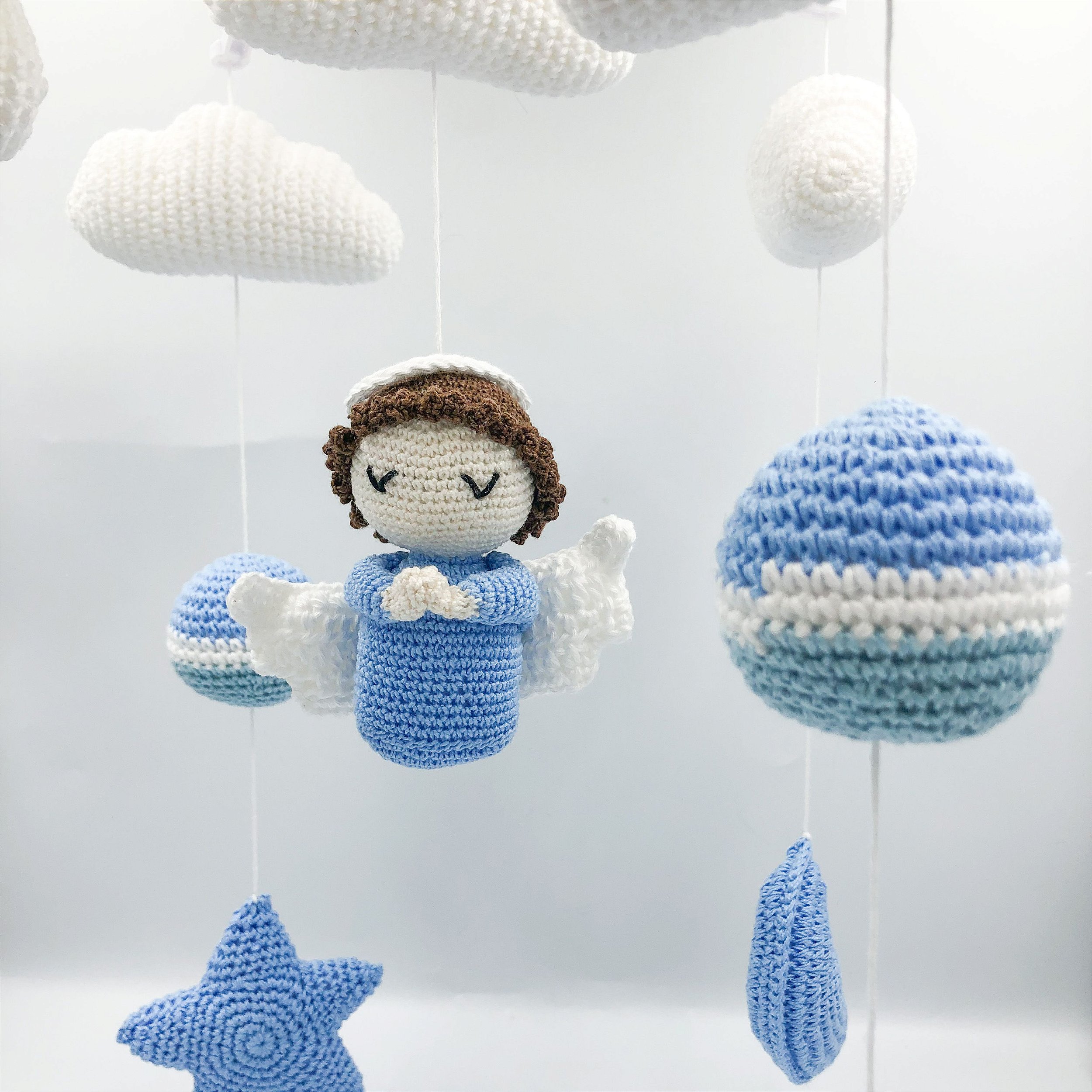 Móbile com detalhes feito em amigumuri, já acompanha toda estrutura para instalação no berço.